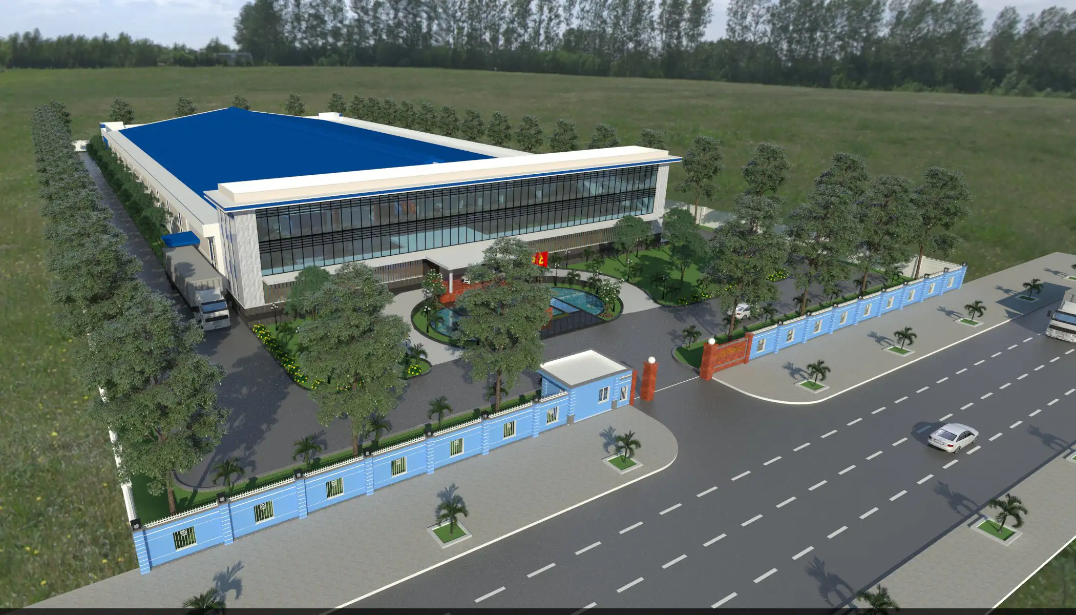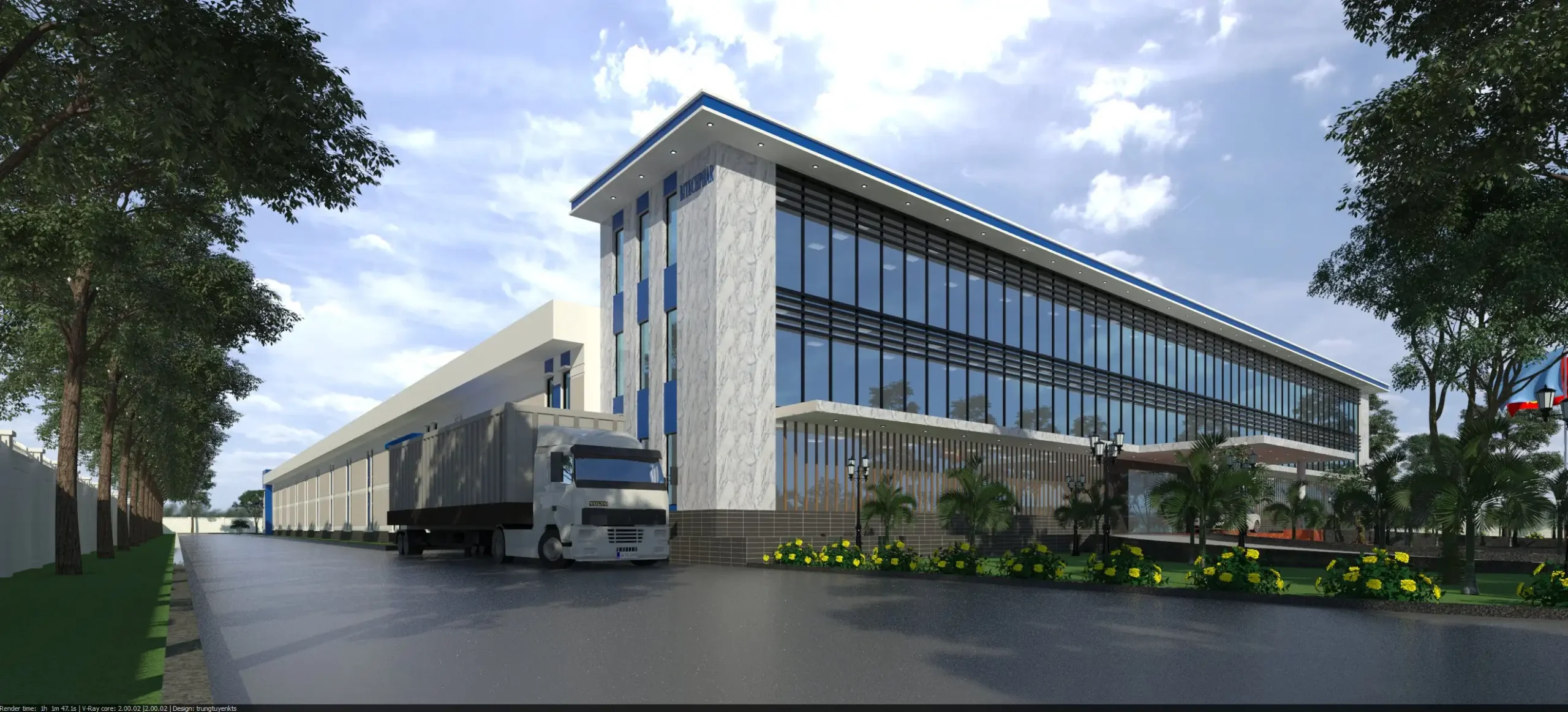 • Nhà văn phòng có diện tích xây dựng 629 m², với 3 tầng làm việc có tổng diện tích sàn 1.887 m² gắn liền với Nhà xưởng sản xuất.