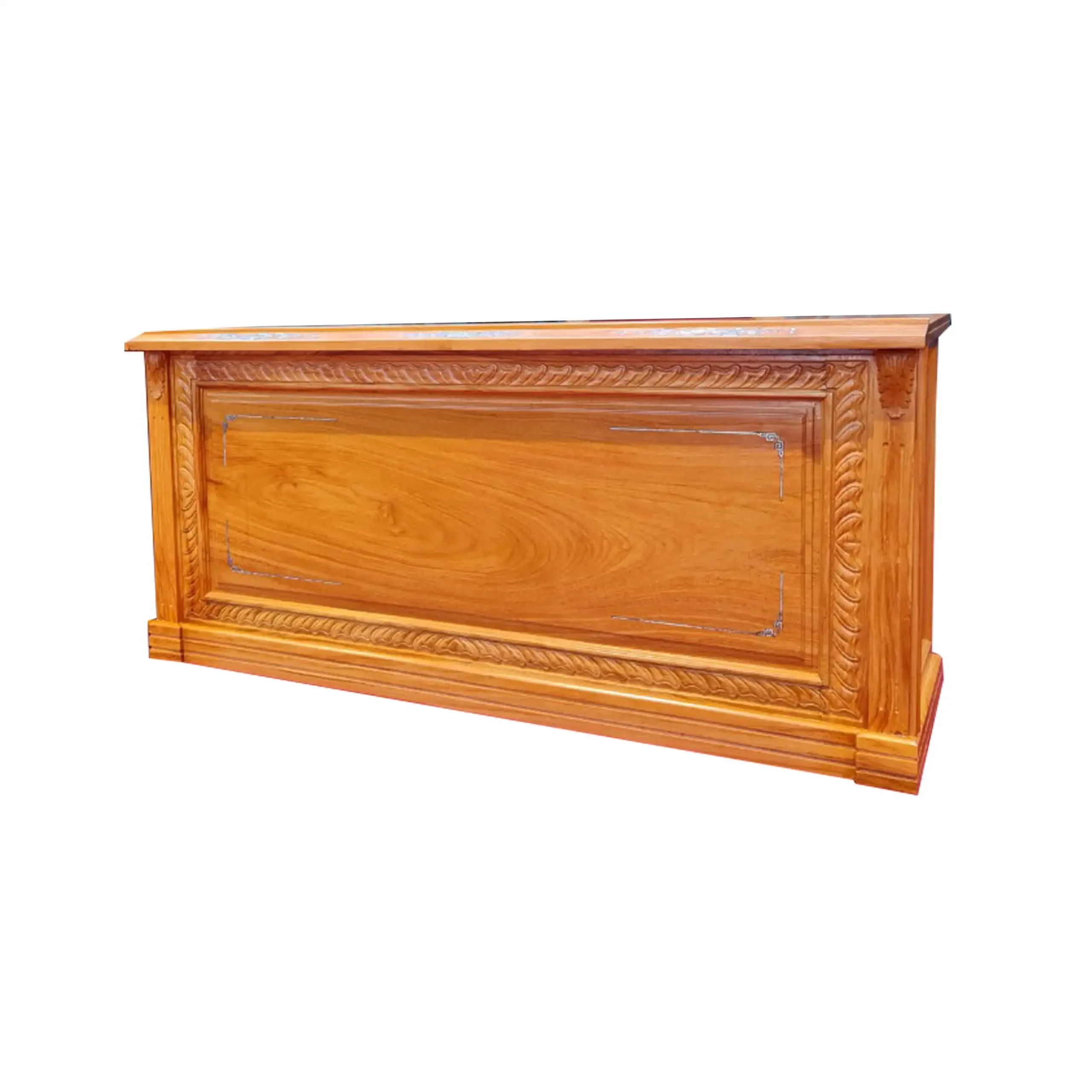 Bàn hội trường mẫu 2 làm từ gỗ tự nhiên nhập khẩu, xử lý phun PU 4 nước đạt tiêu chuẩn, thiết kế hoa văn chạm khắc tinh xảo. Sản phẩm phù hợp với các không gian hội trường, phòng họp sang trọng.