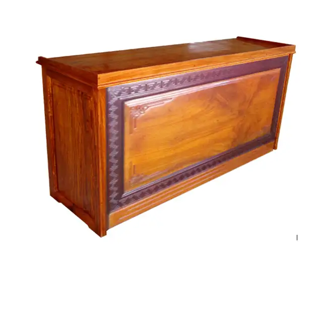Bàn hội trường Mẫu 2 làm từ gỗ tự nhiên nhập khẩu, xử lý phun PU 4 nước đạt tiêu chuẩn, thiết kế hoa văn chạm khắc tinh xảo. Sản phẩm phù hợp với các không gian hội trường, phòng họp sang trọng.