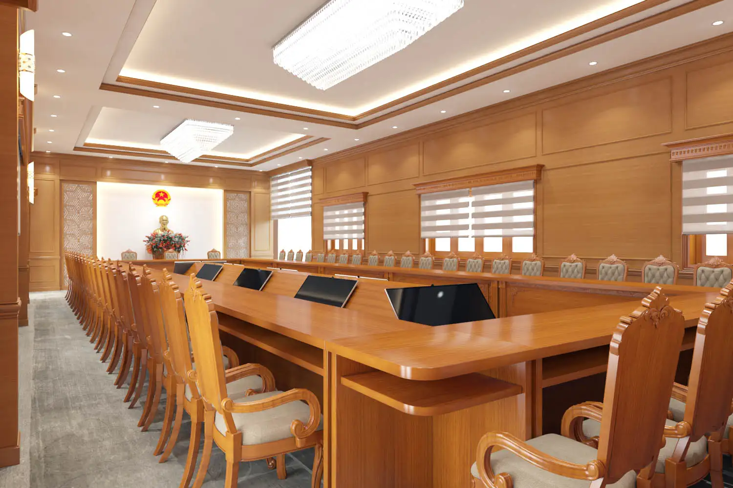 • Công nghệ hội nghị truyền hình tiên tiến: Hệ thống camera, màn hình LED, micro không dây hỗ trợ họp trực tuyến rõ nét.